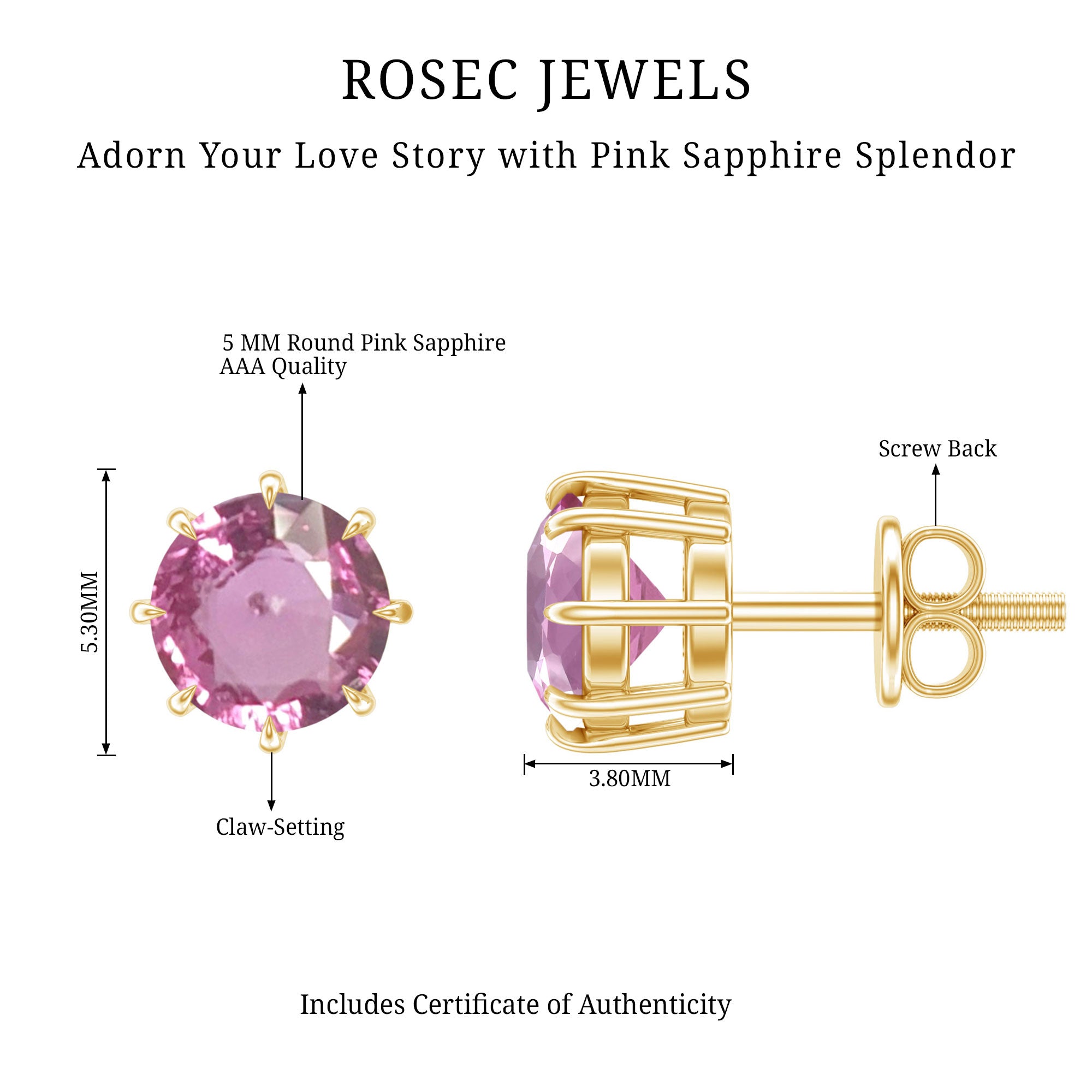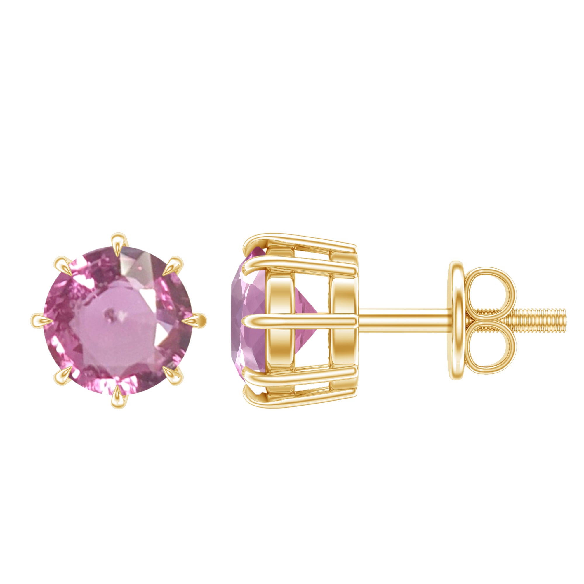 Whether it is New Year Party or Everyday dressing, this Stud Earrings fits with every look. These Earrings embellished with Round Cut Pink Sapphire set as Solitaire in 8 Claw Prong Setting. These Screw Back Earring are composed by Solid Gold.