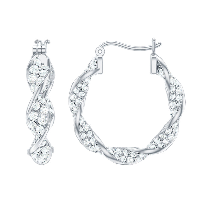 Elevate your personal style to new heights with the enduring elegance of these exquisite Hoop Earrings. These twisted hoops are not just accessories; they are timeless symbols of grace that transcend fashion trends. Each hoop is meticulously crafted with shimmering Round Shape Moissanite gemstones delicately encased in a captivating Pave Setting.