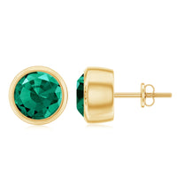 Enhance your style with our vibrant created emerald stud earrings, securely mounted in a double claw setting. These solitaire earrings effortlessly add a colorful splash to any outfit, elevating your overall look. Crafted with the finest quality metal, they are designed to be your lifelong companion. With screw-back posts, these earrings stay securely in place, allowing you to go about your day with confidence and peace of mind. Enjoy the beauty and durability of these timeless earrings stress-free.