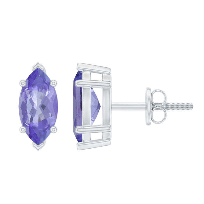 Enhance your beauty with these beautiful Stud Earring Embellished with Marquise Cut Tanzanite set as Solitaire in Prong Setting. This Gold Stud Earring is Composed of Solid Gold