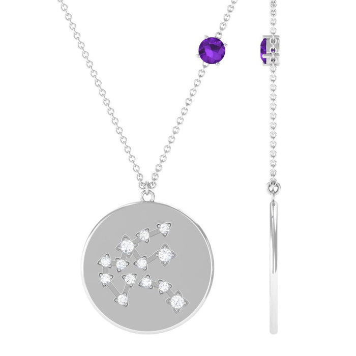 Add a unique touch to your style statement reflecting your personality traits by wearing a Zodiac Constellation Necklace. It is embellished with Round Shape Amethyst on the chain along with Round shape Moissanite are arranged in the pattern of Aquarius Zodiac on the disc. This Aquarius Necklace is a perfect present for the february borns.