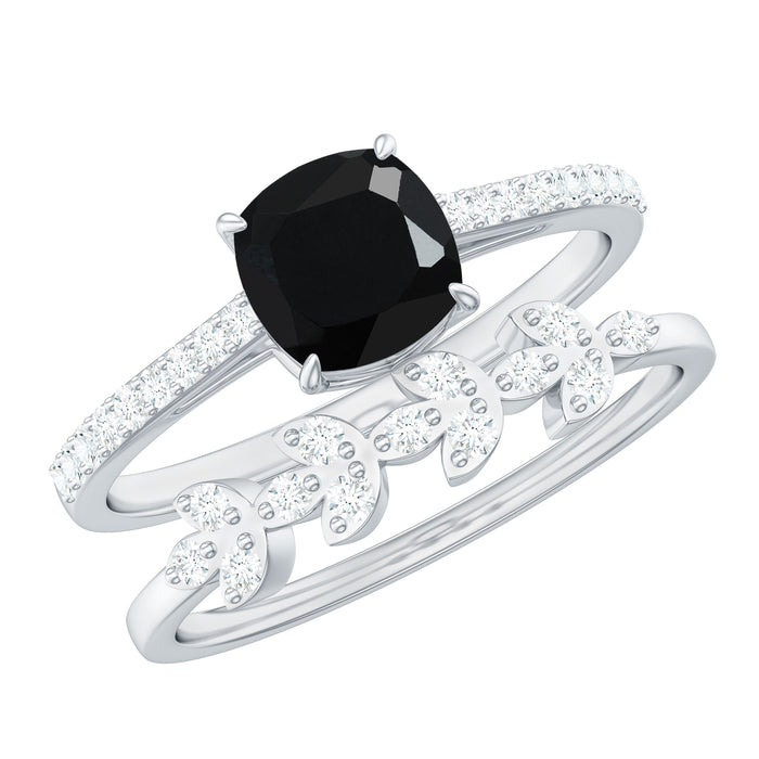 Fallen in love, havent you? Eye-catchy this Ring Set has Cushion Cut Black Spinel in Claw Setting with Diamond on the band is an elegant piece for you.
