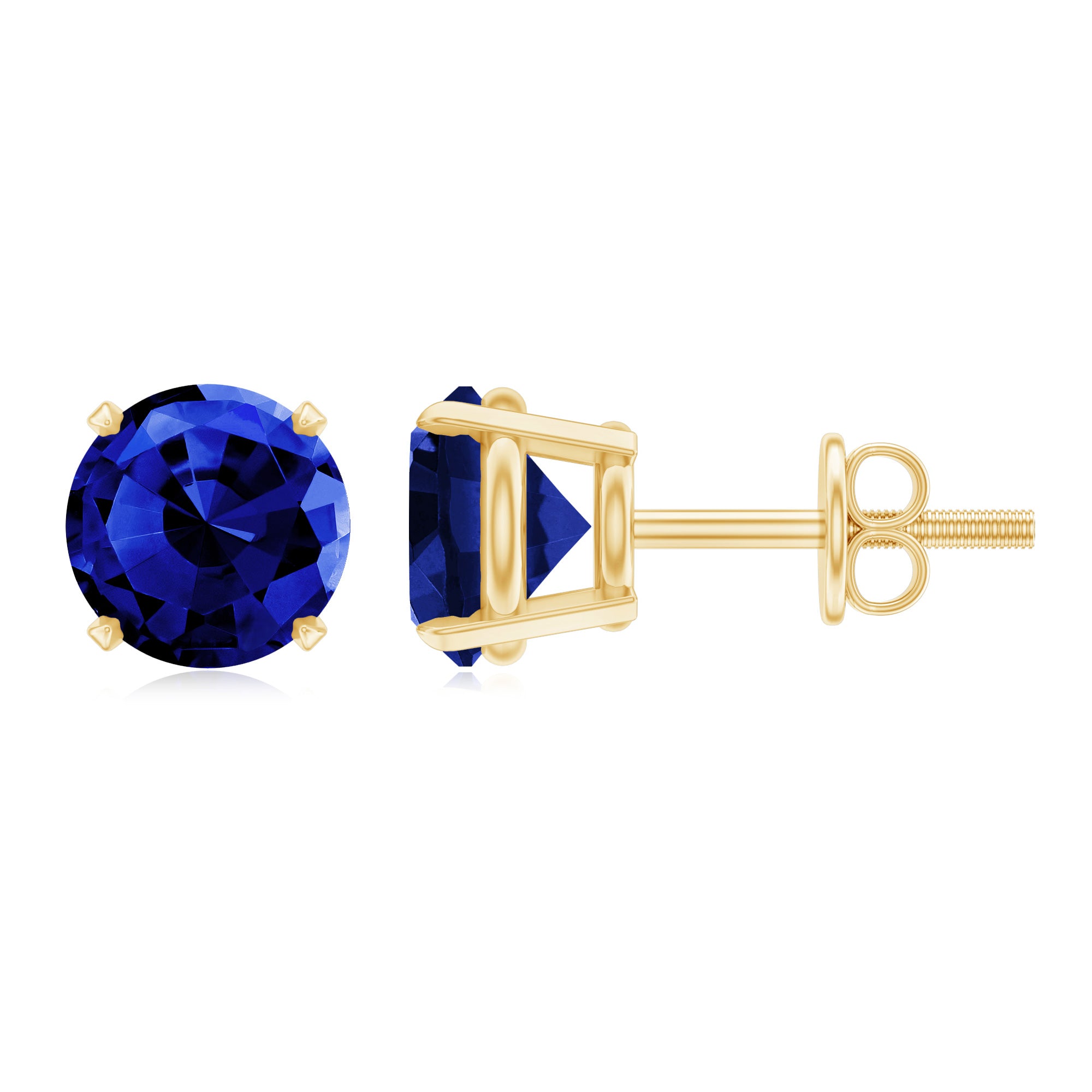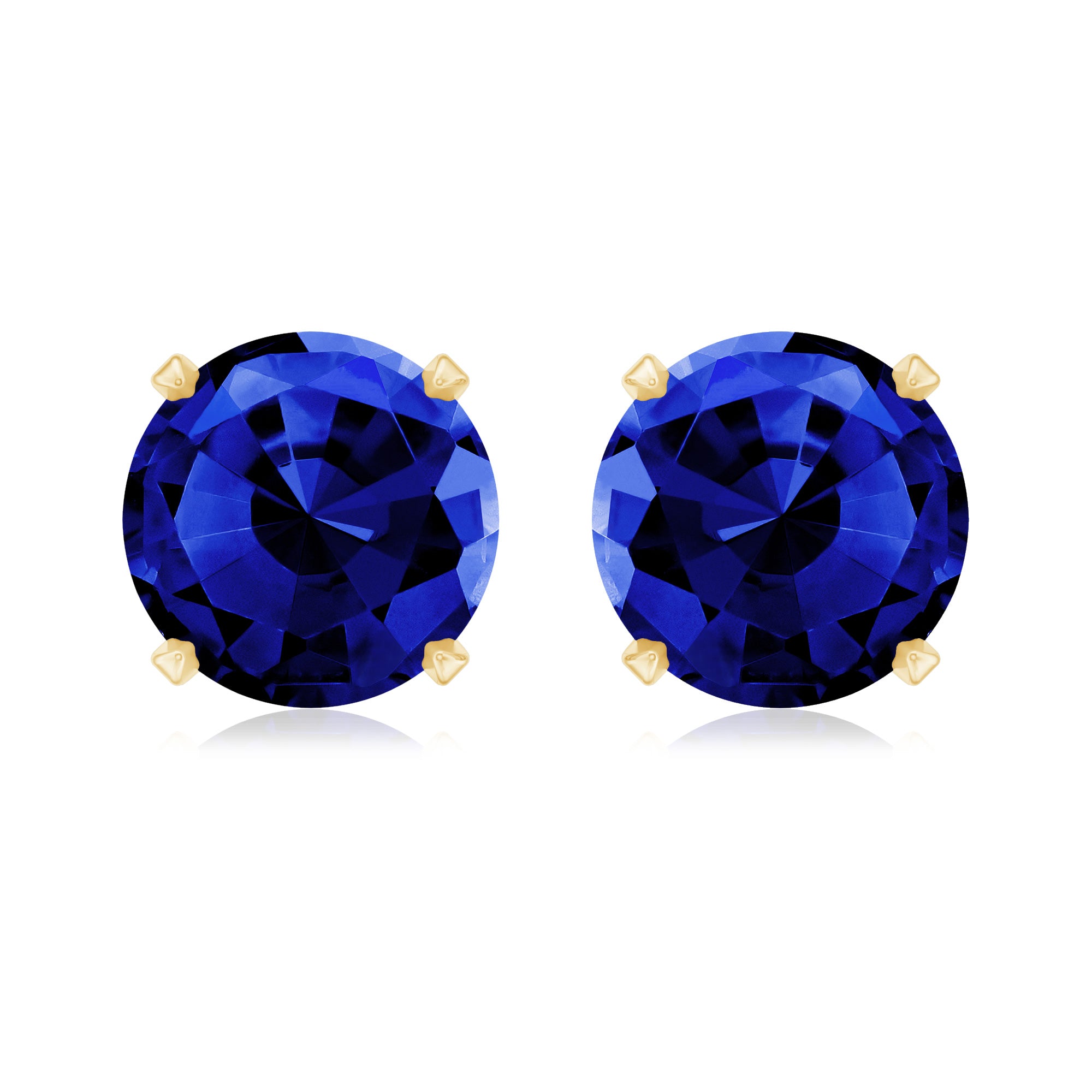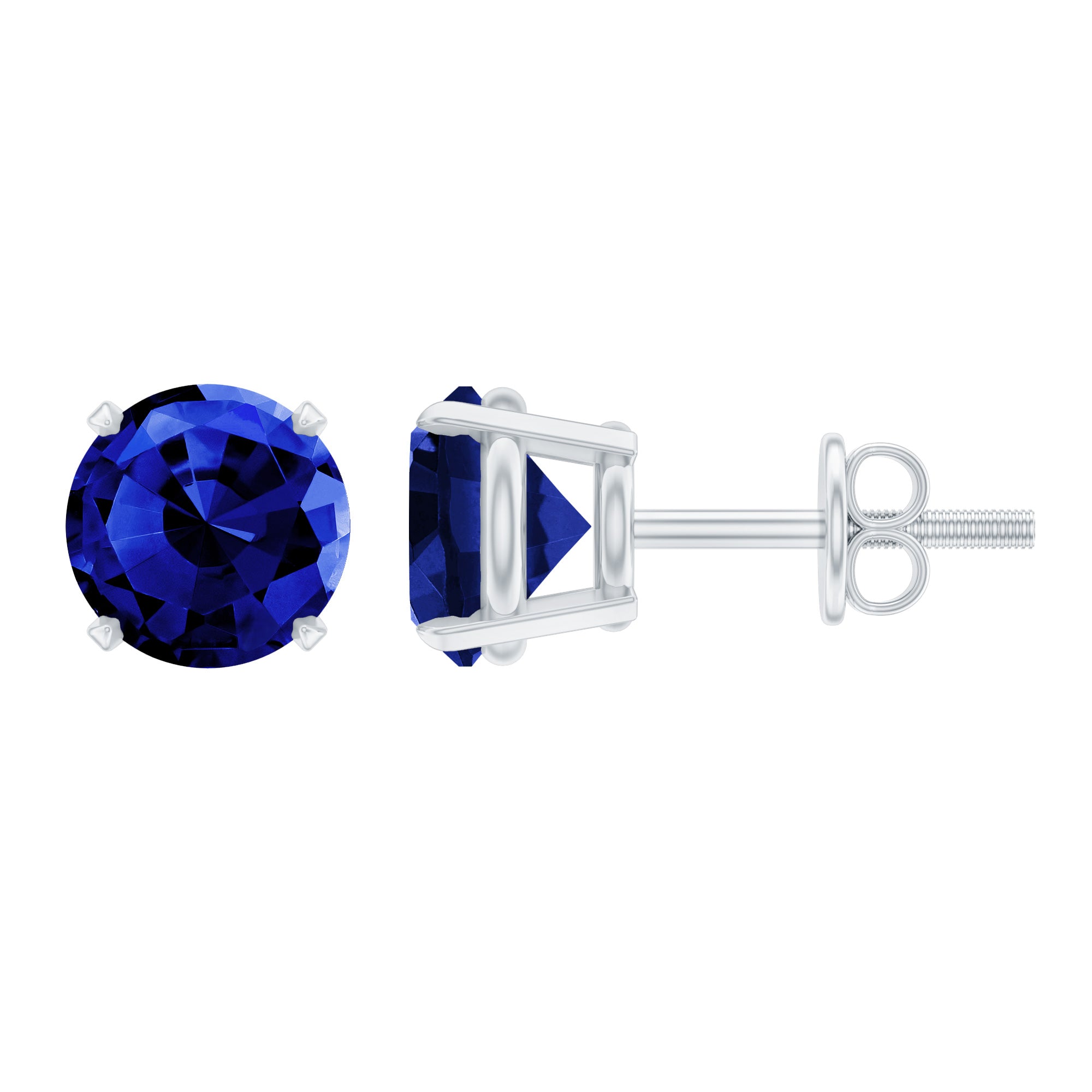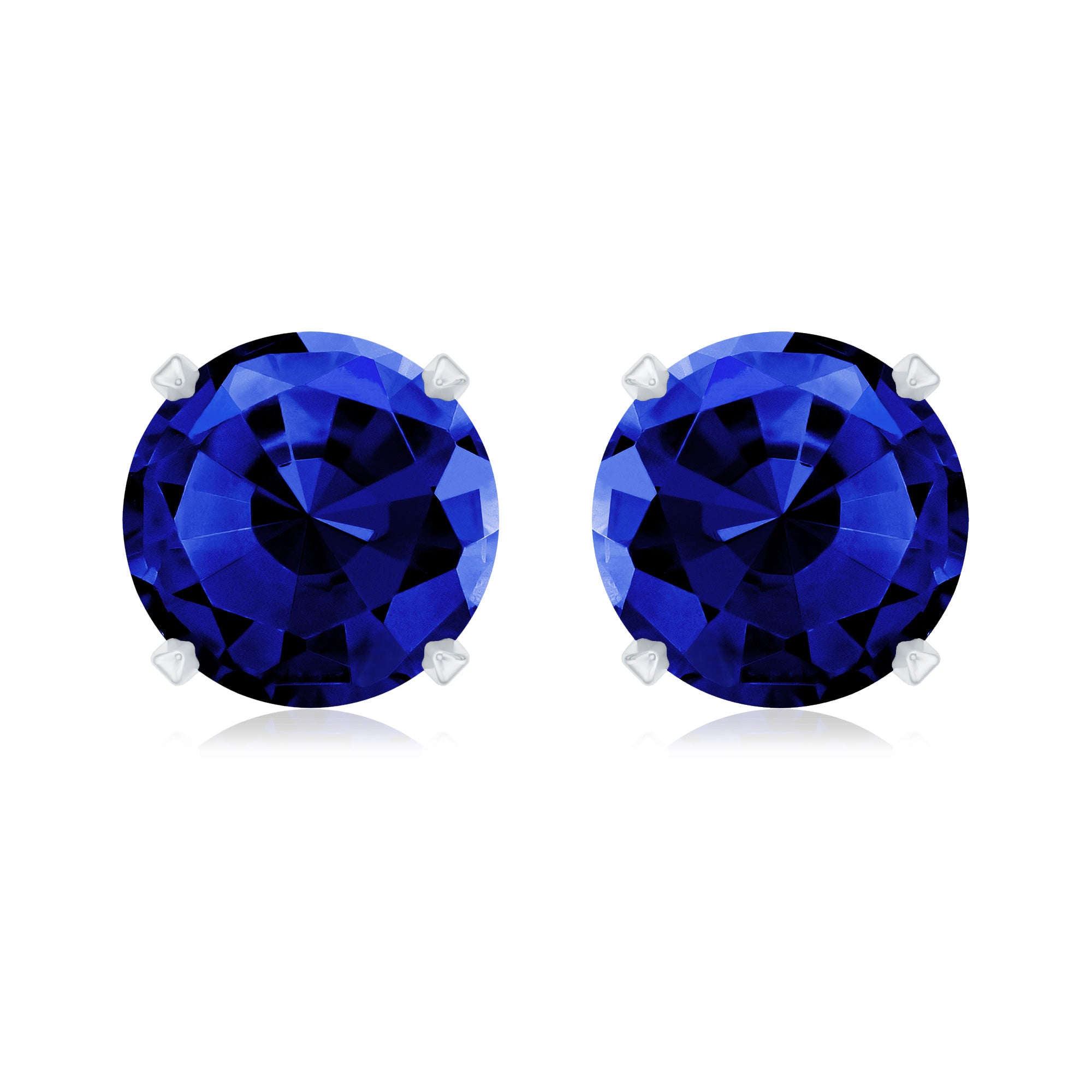 Round Created Blue Sapphire Solitaire Stud Earrings in Claw Setting