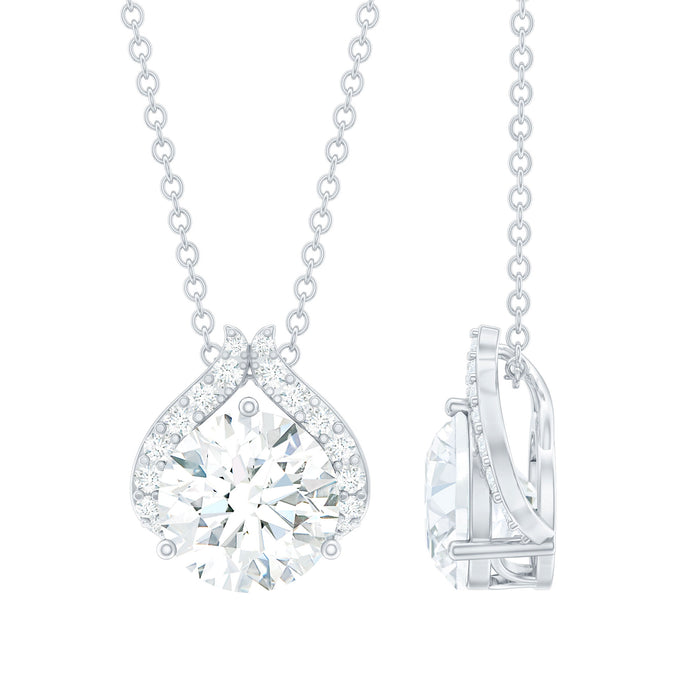Searching for the perfect pendant necklace to enhance your bridal look - our Diamond Solitaire Necklace got you covered. Embellished with an 8 MM round diamond (lab made) of EF-VS Quality delicately set in secure prong setting with accent, allowing it to shine brightly from every angle. The Bride to Be Pendant is made with ethically sourced, lab-grown diamonds, it offers the luxury of fine jewelry while being environmentally friendly. Simple, yet stunning, this Wedding Diamond Necklace will make your special day truly unforgettable with its unmatched brilliance.