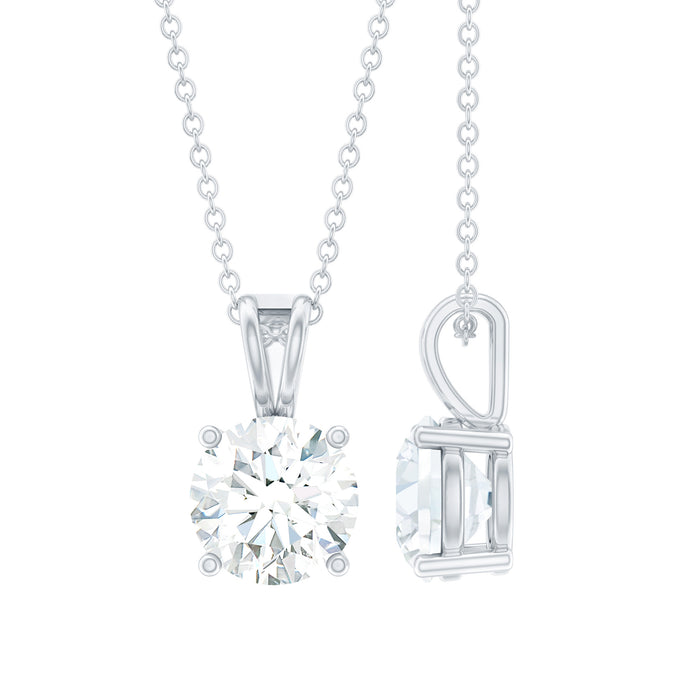 Searching for the perfect gift that will make her eyes shine and face smile, this Solitaire Pendant Necklace got you covered. Embellished in 14K White Gold Plated Silver with an 8 MM round cut moissanite of D-VS1 Quality delicately set in secure prong setting, allowing it to shine brightly from every angle. Our Round Moissanite Necklace makes an ideal gift for birthdays, anniversaries, Valentines Day, Christmas, Mothers Day, New Years, or any special occasion, perfect for celebrating the love and connection you share. Simple, yet stunning, this Simple Pendant will make her feel truly loved and appreciated.