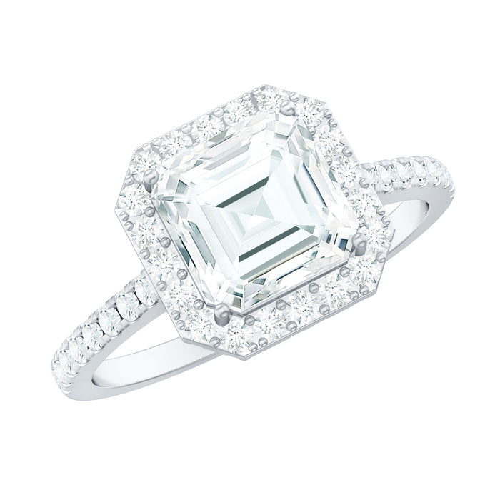 Make your proposal unforgettable with a Moissanite Engagement Ring that stands out for its bold beauty and timeless style. At the center is an 8 MM asscher cut moissanite, held securely in prong setting and surrounded by a halo of small stones. The center stone shines brightly from every angle. Enhancing the band is a line of round cut moissanite side stones that add even more brilliance, creating a soft shimmer across the finger and bringing extra charm to the whole design. This 3 Carat Moissanite Ring is made for those moments you will remember forever, whether you are proposing, celebrating an anniversary, or giving a meaningful gift. It is available in a wide range of sizes, so you can find the perfect fit for everyday comfort and special occasions alike. Designed with care and attention to detail, the Halo Engagement Ring is made to last and to be treasured. The beautiful halo, the brilliant cut, and the thoughtful design come together to tell a story of love and commitment. This Asscher Cut Engagement Ring is a reminder of everything you have shared and everything that is still to come. A beautiful symbol of a love that shines bright and lasts forever.