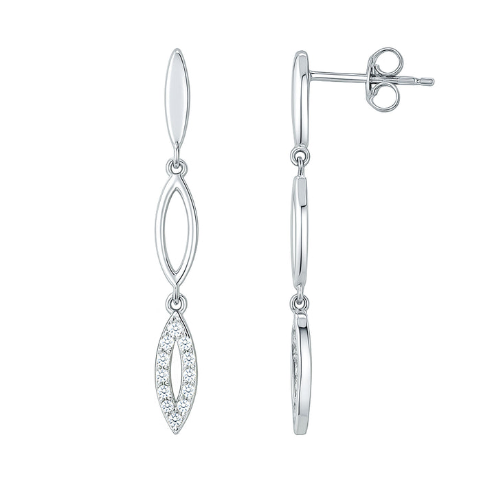 Mesmerize everyone with the captivating sparkle of these Cubic Zirconia Dangle Earrings, crafted to bring effortless elegance to every moment. Designed in 925 Sterling Silver, each earring features a graceful design that moves beautifully with you, catching the light in the most enchanting way. The Zircon stones shimmer with a brilliant clarity, creating a radiant glow that adds a touch of sophistication to any outfit, whether you are dressing up for a night out, attending a special event or simply elevating your everyday look. Secured with a comfortable Screw Back Closure, these CZ Diamond Earrings stay perfectly in place, offering both style and peace of mind throughout the day. Their versatile design pairs effortlessly with evening dresses or chic casual wear, making them a go-to accessory for any occasion. Presented in a signature jewelry box, they also make an ideal gift for birthdays, anniversaries, holidays or to surprise someone who loves a bit of sparkle. With their elegant movement, dazzling shine and timeless charm, these CZ Earrings are a little touch of brilliance that adds confidence and beauty to every step you take.