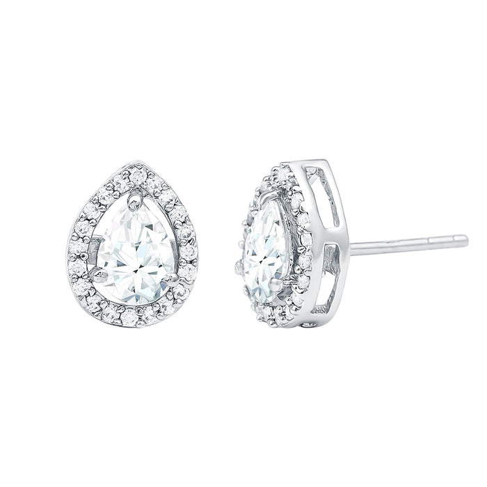 Dazzle up with the sparkle of these stunning Cubic Zirconia Earrings, thoughtfully crafted in shining 925 Sterling Silver for an elegant, timeless look. Each earring features a beautifully cut 5X7 mm Pear Shape Zircon set in Prong Setting with a Halo of dainty stones that catches the light with every move, creating a radiant glow that instantly brightens your style. The Screw Back Closure ensures a secure, comfortable fit, making these Sterling Silver CZ Earrings perfect for all-day wear, whether you are heading to a festive celebration or adding a touch of glamour to your everyday outfits. Their classic yet modern design pairs effortlessly with everything you wear, giving you endless ways to style them. Arriving in a lovely jewelry box, these Cubic Zirconia Stud Earrings are ready to gift for Christmas, anniversaries, birthdays or any special moment when you want to make someone feel cherished. Perfect for those who love refined sparkle, these CZ Stud Earrings are designed to make every occasion feel extra special.