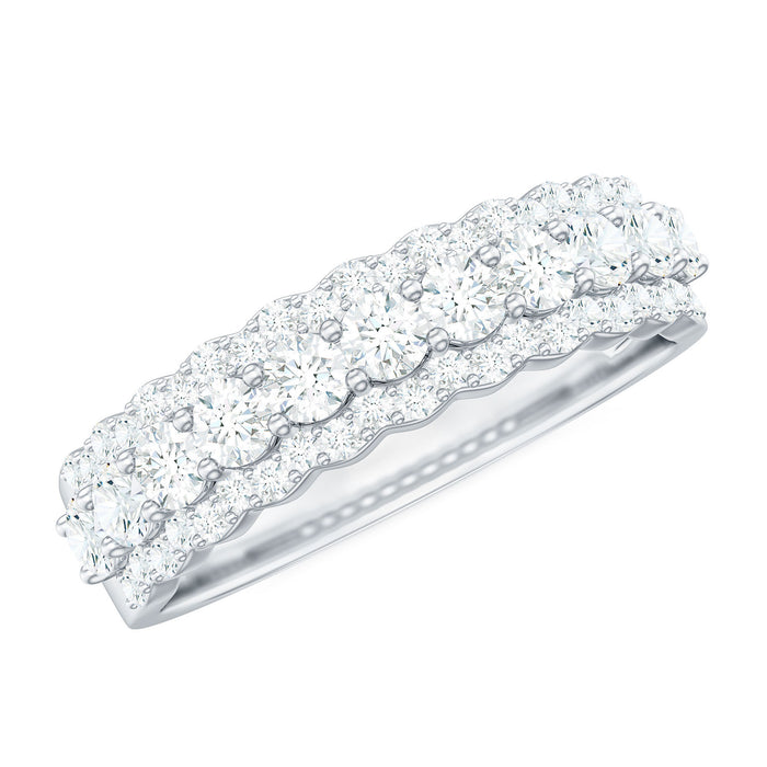 Shine brighter every day with this gorgeous Lab Created Diamond Eternity Band, an ideal way to celebrate love, milestones, and unforgettable moments. This Half Eternity Ring features three rows of round lab-grown diamonds set in prongs, following a semi-eternity design. Carrying a deep significance, this Lab Diamond Wedding Band serves as a tangible reminder of personal vows, highlighting loyalty and faithfulness. This Wedding Anniversary Band represents an unbreakable bond that knows no limits. It stands as a testament to unwavering devotion, a sparkling promise of forever, crafted to be cherished for generations. This Wedding Eternity Band is bound to bring a sparkle to your eyes as it is available in various metal color and purity options, so you can add a personal touch to this beauty. As a beloved heirloom for future generations, this Three Row Diamond Band embodies everlasting love. Timeless and elegant, this Diamond Anniversary Ring is perfect for those who appreciate a minimalist and traditional style.
