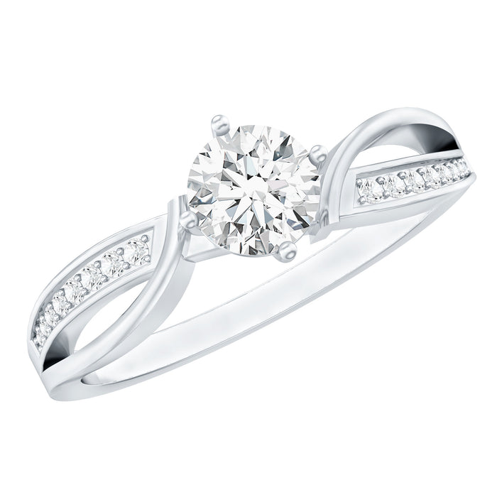 Amaze and delight the one you love with this Solitaire Engagement Ring as it is surely the right choice for her. This Infinity Ring is handcrafted in high quality metal and features a round shaped lab grown diamond of EF-VS quality set in the center in a 4-prong-diagonal setting. The diamond-studded band gracefully intertwines in an Infinity inspired design, representing the unbreakable bond between two souls. As a diamond is an April birthstone, this Solitaire Diamond Ring makes a meaningful gift for those born in the month or anyone who loves the touch of sophistication. Delivered in a nicely packed box, it is ready to gift as soon as it arrives, making this a perfect choice for any celebration.