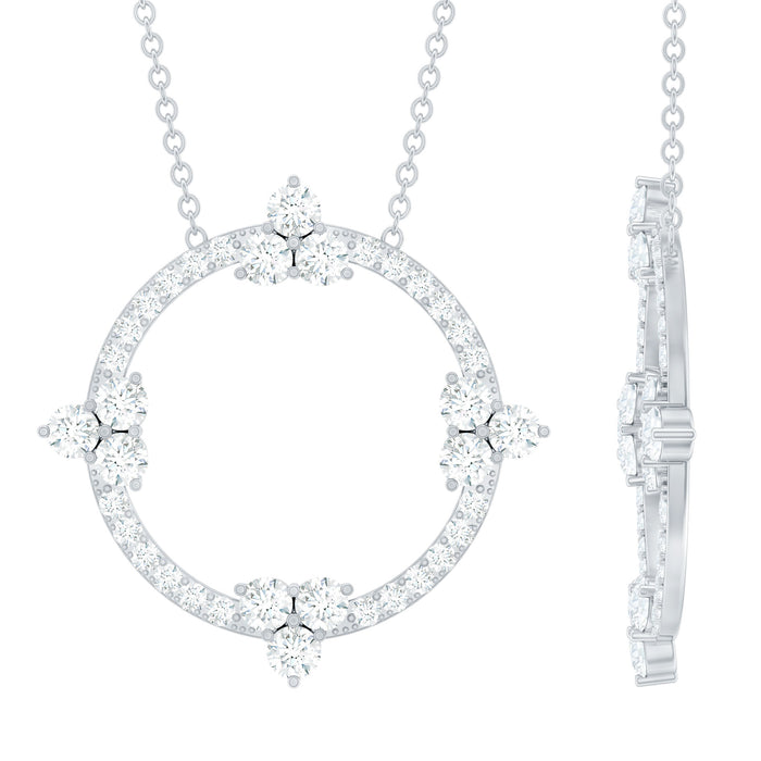 Make every head turn and elevate your elegance with this stunning Diamond Open Circle Necklace - a piece that speaks of timeless beauty and sophistication. Whether you are adorning yourself for a special occasion or upgrading your daily jewelry collection, this Diamond Eternity Necklace is designed to make you shine effortlessly. It is embellished with round cut diamonds in a circular frame, the design is further accented with lab grown diamond trios strategically placed in four equal gaps. Crafted with our master artisans unmistakable eye for detail, this Circular Necklace strikes the perfect balance between simplicity and durability.