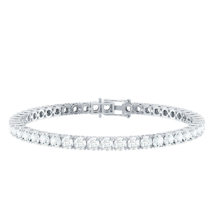 Every girl hopes to receive a stunning Lab Diamond Tennis Bracelet from her partner. This is your opportunity to impress her with 11 carats of dazzling diamonds. We have set 44 round brilliant diamonds, all EF color and VS clarity, in a high quality metal setting. She will feel truly special wearing it. These beautiful lab-grown diamonds blend classic elegance with modern innovation. The prong set round cut stones create a smooth, flowing line that embodies both traditional grace and contemporary luxury, making this Womens Tennis Bracelet a standout piece. Our dedication to lab-grown diamonds showcases a modern take on luxury, ethical, sustainable, and simply stunning. Ideal for both significant occasions and everyday elegance, this Wedding Bracelet for Brides goes beyond trends. Its adaptable design easily shifts from the boardroom to evening soiree, providing an investment in lasting beauty that will be treasured for years. Whether for yourself or as a gift for someone special, this Stackable Bracelet is more than just an accessory - its a symbol of refined taste and mindful luxury.