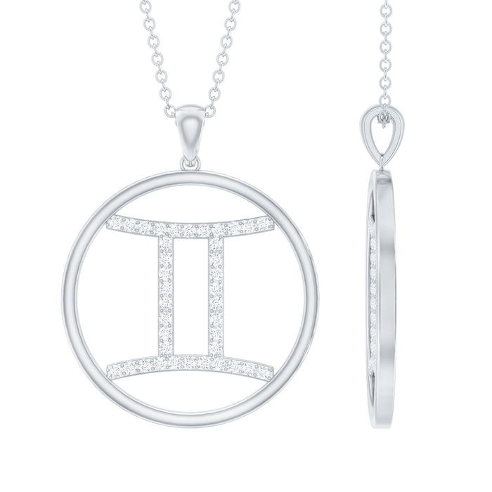 Make your beloved feel special with this custom-designed Zodiac Pendant. Adorned with a Moissanite set in a Surface Prong Setting, this piece showcases the Gemini Zodiac symbol in a beautiful circle. A unique and memorable jewelry piece.