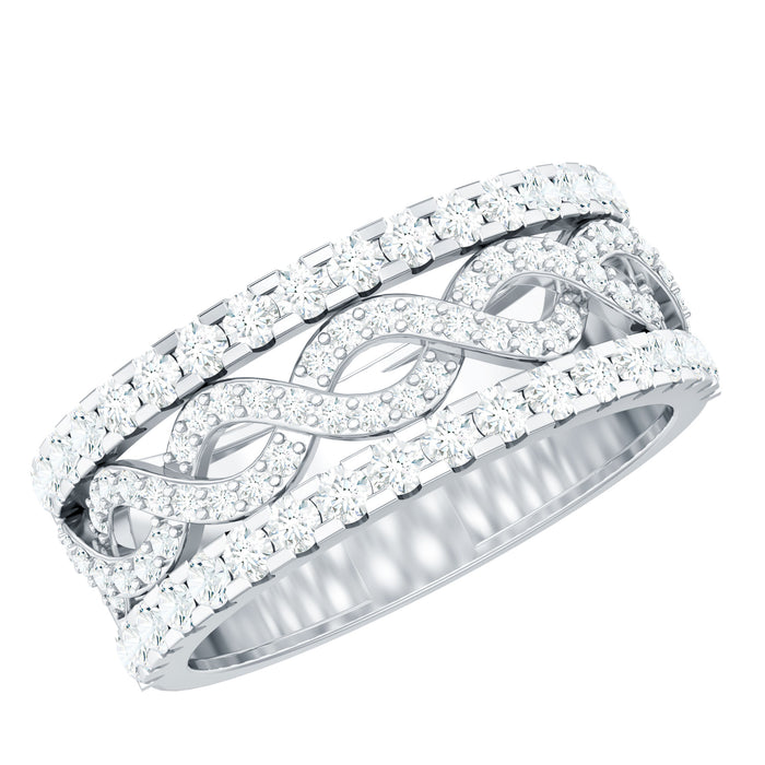 A beautiful and remarkable gift for your beloved, this Moissanite Wedding Band is guaranteed to wow your partner. This exquisite band ring showcases a twisted infinity design at its center, adorned with tiny, sparkling moissanite stones that also embellish the edges of the band, enhancing its allure and charm. The design is both elegant and eye-catching, making it ideal for daily wear as well as those significant occasions that truly matter. This amazing Infinity Wedding Band is a wonderful way to express your genuine emotions and help you stand out in any setting. This Designer Wedding Band is crafted for those seeking something timeless, durable, and meaningful. With meticulous attention to detail, this Wide Moissanite Band is comfortable to wear and designed to last a lifetime, just like your commitment. It arrives in a signature jewelry box, perfect for gifting or secure storage. Available in US ring sizes 3 to 13, this Wide Wedding Band guarantees a perfect fit for every woman. Whether you are getting married or upgrading your band, this piece is designed to symbolize your journey and love.