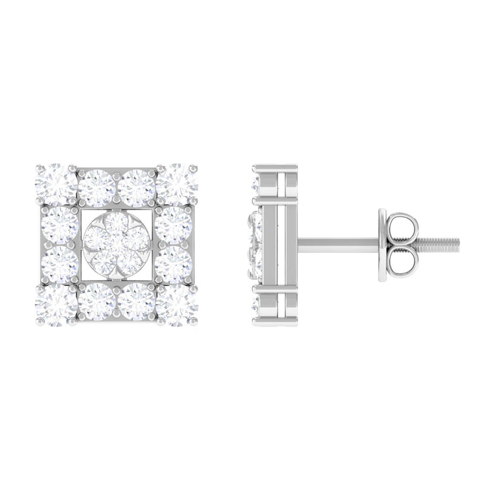 The Moissanite Square Stud Earrings are a timeless keepsake that youll be finding reasons to wear again and again. Each stud in the Geometric Earrings comprises dazzling Round Cut Moissanites secured by Pave Setting on a square frame. These Screw Back Earrings are beautifully composed with Solid Metal. Get these Moissanite Earrings for your loved one as they will add sparkle to all her favorite looks.