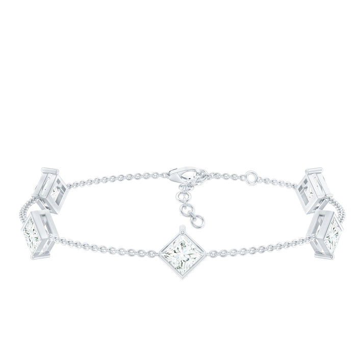 Sparkle effortlessly with this Minimal Bracelet adorned with diagonally placed 5 MM Princess Cut Diamond gemstones. The minimalist design exudes sophistication, making it perfect for both everyday elegance and special occasions. Secured with a Lobster Clasp Closure, this Man Made Diamond Bracelet ensures a comfortable fit. Elevate your style with this stunning creation from Rosec Jewels, where luxury meets ethical craftsmanship. Perfect for layering or wearing alone, this Princess Cut Bracelet adds a unique flair to any outfit, making it suitable for both everyday wear and special occasions. Its enchanting combination of elegance and charm makes it a thoughtful Valentines Day Gift for loved ones or a delightful addition to your jewelry collection.