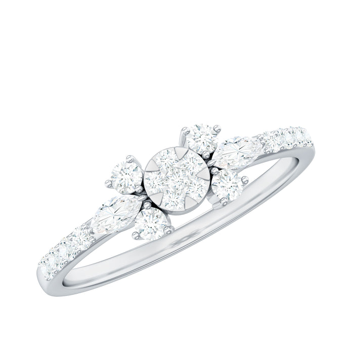 Make her heart skip a beat the moment she sees this Diamond Promise Ring, a delicate symbol of love that feels both timeless and modern. At its center, dainty Diamond stones create a focal point that draws the eye without trying too hard. On each side, a graceful mix of Marquise and Round Shape Diamond stones adds charm. The band itself is lined with tiny Diamond stones, giving the ring a continuous shimmer that feels elegant from every angle. This Diamond Ring for Women is romantic in a thoughtful, meaningful way, made for moments that matter. Whether it is a promise, a milestone or a simple I choose you, this Diamond Proposal Ring speaks when words fall short. It comes beautifully presented in a signature jewelry box, ready to turn an ordinary day into an unforgettable memory. With a variety of ring sizes available, this Natural Diamond Ring is designed to fit her perfectly, just like the love it represents. Graceful and full of emotion, this Commitment Ring for her is a promise she can wear every day, close to her heart.