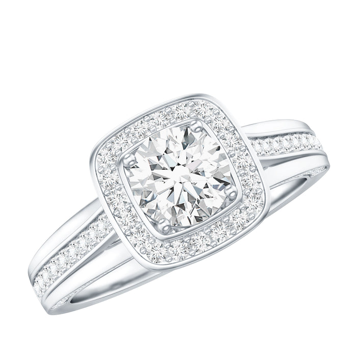 Celebrate love with a design that embodies both legacy and light. This Classic Engagement Ring showcases a stunning 6 MM round cut moissanite as its focal point. Surrounding the center stone is a halo of round moissanites, carefully arranged to enhance the brilliance and size of the centerpiece. However, what truly sets this Moissanite Engagement Ring apart is the exceptional craftsmanship, from the intricately moissanite-studded gallery to the delicately set side stones, every detail is crafted with care and a story to tell. Designed to be admired from all perspectives, the round cut center stone offers a harmonious profile that feels both bold and feminine. A perfect fusion of architectural precision and romantic detailing, this Certified Moissanite Ring is available in a variety of metal types and color choices, allowing you to select a style that is uniquely yours. This 1 Carat Moissanite Ring for Women is not merely about brilliance; it is a cherished heirloom in the making, crafted for those who value timeless beauty with a contemporary spirit. Whether for a proposal, a significant milestone, or a vow renewal, it is a piece intended to commemorate life’s most significant promises.
