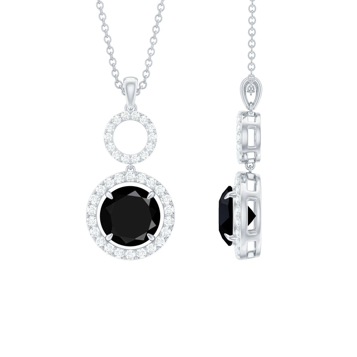 Elevate your style with this exquisite Created Black Diamond Pendant. Featuring a Brilliant Round Shape Created Black Diamond in a Claw Setting with white diamond Halo and Open Circle, this pendant necklace is a stunning addition to your jewelry collection. Crafted in Gold, this dangle pendant makes for a lovely surprise for your beloved.
