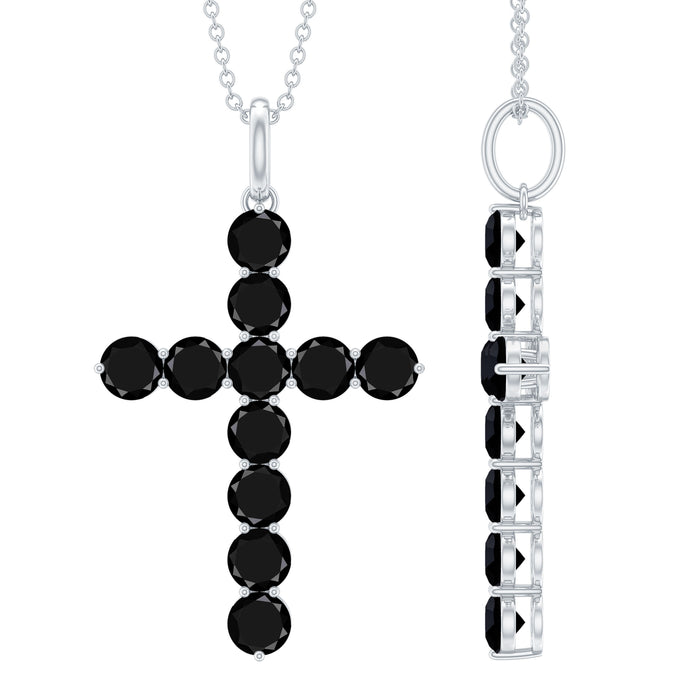 This Stackable Cross Necklace is crafted in solid gold and designed for women. It features a Round Cut Created Black Diamond in a prong setting, which adds a touch of glamour and helps you shine bright like never before.