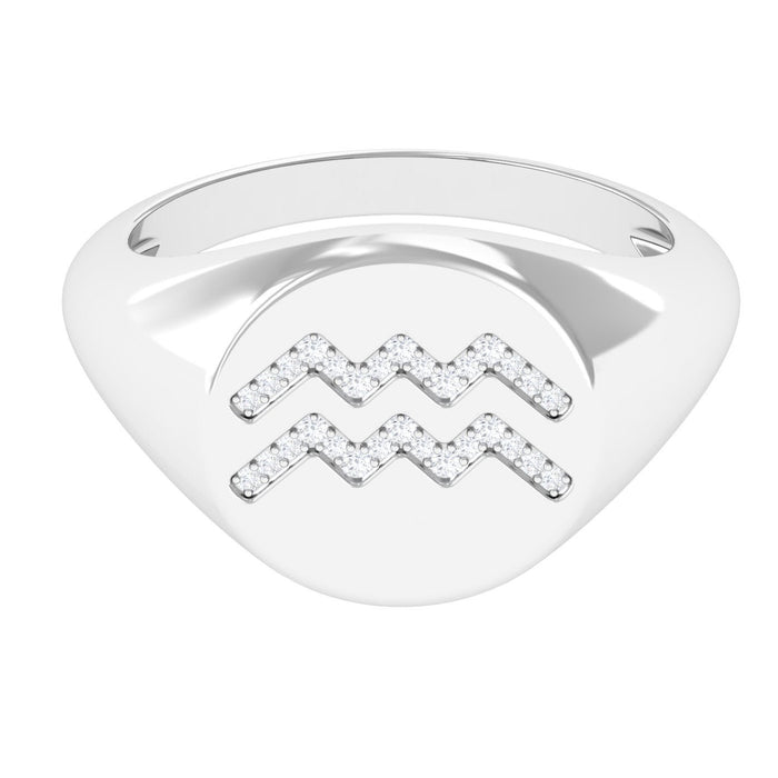 Signet rings are traditionally recognized for their flat or slightly raised face that displays a symbol, engraving, or motif. In this design, the Aquarius zodiac emblem becomes the focal point, offering a meaningful detail that reflects the wearer’s astrological identity. The structured shape of the signet ring provides a timeless appearance suited to both modern and classic jewelry styles.