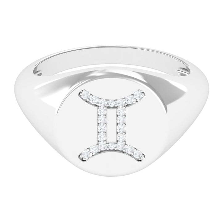 Feel blessed wearing your star sign everyday in the form of this Zodiac Signet Ring embellished with Round Cut Cubic Zirconia in a Pave Setting. This CZ Zodiac Ring has been designed with Gemini, making for a meaningful Zodiac Jewelry for May borns.