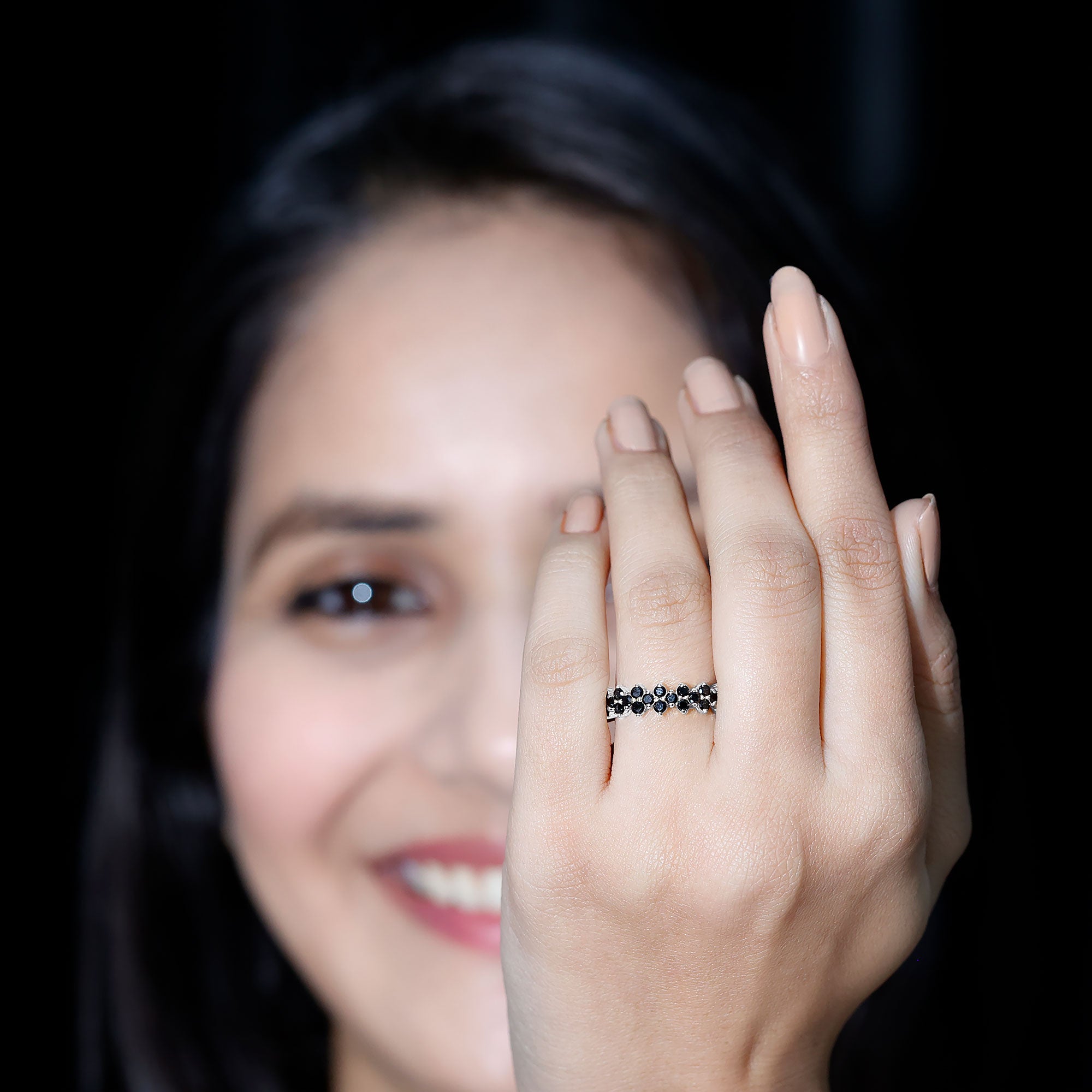 A Black Spinel Eternity Ring is encrusted with a row of identically-sized Black Spinel that just like the name suggests, has no start or end. So, if you can’t get enough of the bold black pop of Spinel, this ring could be the one for you. This Black Spinel Ring isn’t all aesthetics but also holds a much deeper meaning. It resonates with the kind of love that is meant to last a lifetime, i.e, eternal (which is also what makes it a highly treasured Black Spinel Wedding Ring).