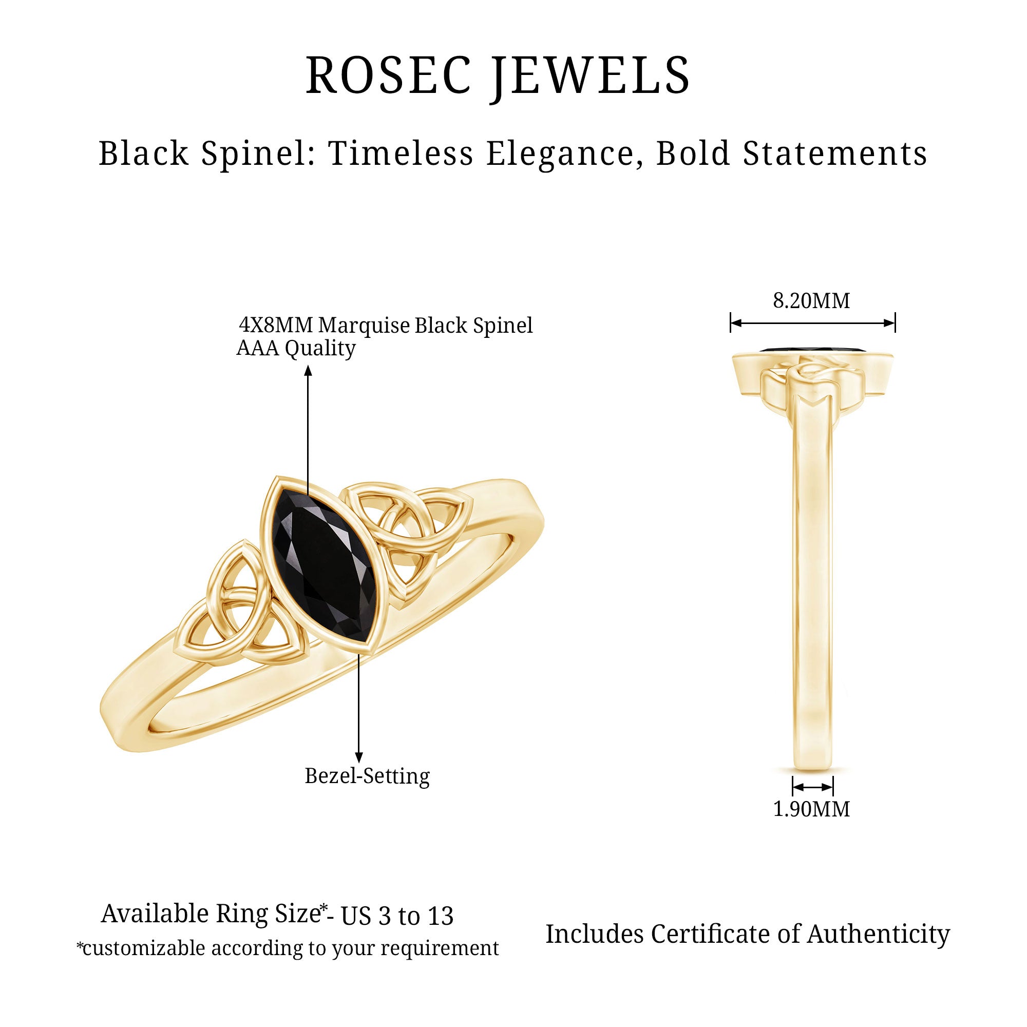Having said that, let’s get to the most exciting part and find your favorite among the wide pool of trendy Black Spinel Gold Rings that we carry!