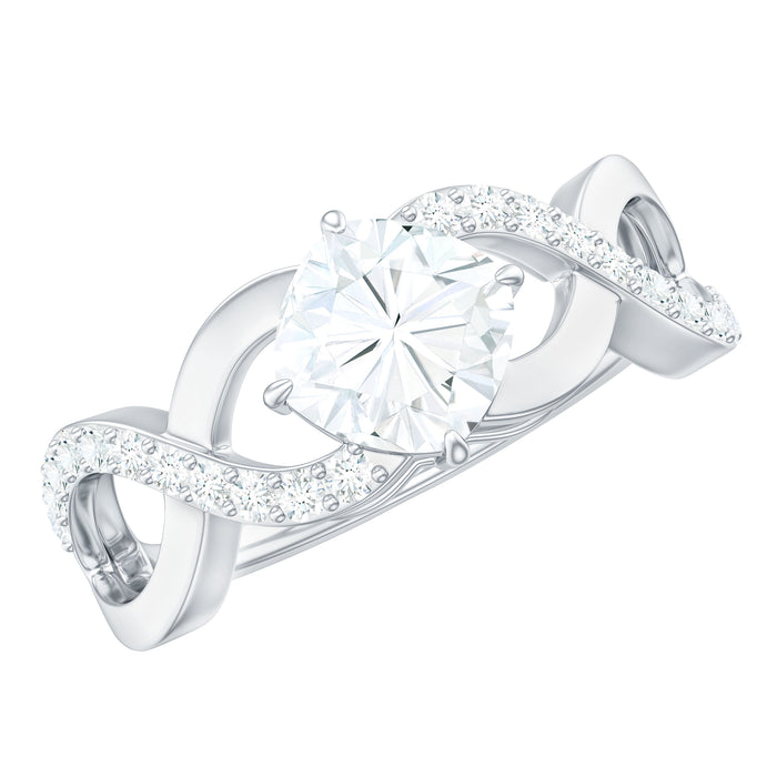 Create a special and unforgettable moment with this Moissanite Engagement Ring, a beautiful symbol of love and togetherness. The Infinity Engagement Ring features a sparkling 6 MM cushion cut moissanite set in claw setting. What makes this Cushion Cut Engagement Ring truly unique is the elegant crossover band, representing two lives coming together as one. The twisted band adds a meaningful touch and a stylish look to the ring. Small moissanite stones decorate the band, adding extra sparkle that shines all around the finger. This 1 Carat Moissanite Ring is designed with comfort in mind, making it perfect for everyday wear while still looking stunning for special occasions. The moissanite stones have D color and VS1 clarity, giving them a bright fire and brilliance that rivals high-quality diamonds, but with less impact on the environment. The Crossover Ring is available in US sizes 3 to 13, ensuring a great fit for anyone. Its simple yet elegant design captures the promise of a shared future and the joy of true love. Perfect for anyone who wants a timeless and eco-friendly ring, this Solitaire Ring is sure to be treasured forever.
