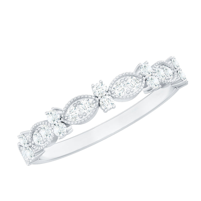 Destined to make hearts flutter, this Half Eternity Ring is a romantic treasure crafted to speak the language of love. The band showcases elegant marquise shaped design, delicately studded with dainty Round Shape Diamond stones that shimmer softly with every movement. Fine Milgrain detailing traces the edges, adding a vintage inspired charm that feels full of emotion. This thoughtful blend of classic artistry and modern romance creates a ring that feels meaningful and effortlessly beautiful. Designed as a half eternity band, it offers just the right balance of sparkle and comfort, making this Diamond Eternity Ring perfect for everyday wear or special moments shared together. Available in a variety of ring sizes, this Diamond Ring for Women is made to fit her perfectly and feel like it was created just for her. Presented in a signature jewelry box, this Natural Diamond Ring arrives ready to turn any special moment into a memory she will cherish forever.
