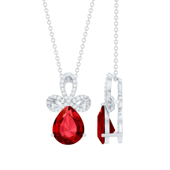 Elevate your style effortlessly with our Designer Lab Created Ruby Pendant Necklace, a versatile masterpiece that effortlessly complements both your formal and casual ensembles. It features a 8x10 mm Lab Grown Pear Shaped Ruby, reminiscent of a delicate drop, adorned with a radiant array of Round Lab Grown Diamond in a captivating floral pattern. Its not just a necklace; its a statement of timeless elegance that sparkles with Aaaa Quality Ruby and Ef-Vs Quality Diamond. Gift this Pear Shaped Ruby Pendant to your loved ones on their special days and watch as it becomes a cherished symbol of your thoughtfulness. Let your style blossom with this enchanting necklace!