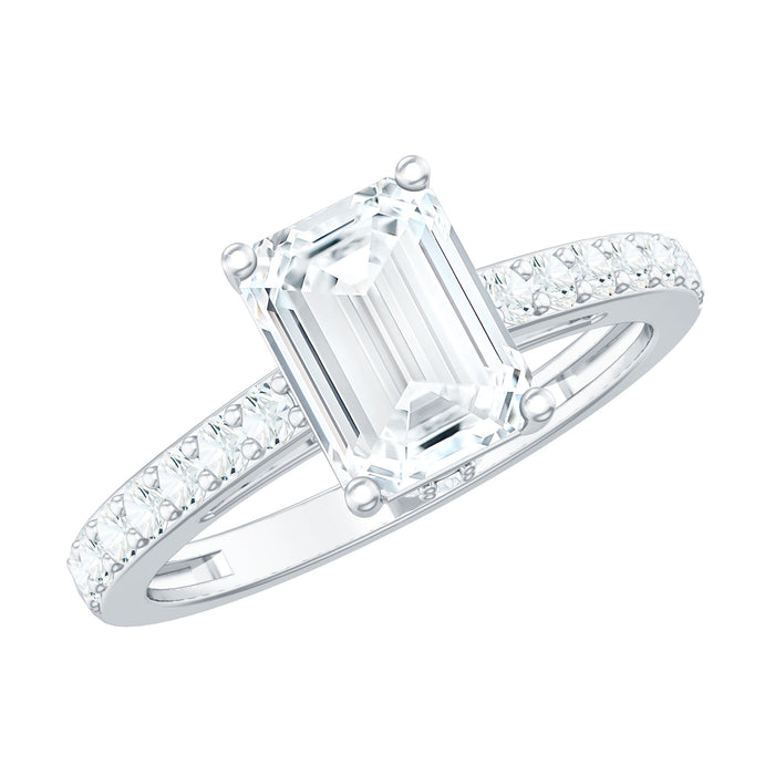 Make your special lady feel cherished with our gorgeous Lab Grown Diamond Engagement Ring on her big day. Its simple yet stunning design beautifully showcases the center gemstone. This classic Emerald Cut Engagement Ring features an EF-VS quality lab diamond, ensuring the fire and brilliance that represent love and commitment. At its heart lies a 6X8 MM emerald cut lab grown diamond, enhanced by a hidden halo of round diamonds beneath the main stone for an added surprise. The sparkling round cut side stones on the Solitaire Diamond Engagement Ring create a dramatic and eye-catching look, reflecting your unique style and personality. This Hidden Halo Engagement Ring has a timeless, brilliant geometric shape with sharp edges that draws all the attention. It perfectly blends classic beauty with a modern twist, providing an elegant look that radiates stunning brilliance. This Diamond Statement Ring comes in various ring sizes, ensuring a perfect fit that feels like it was made just for you. Every aspect of this Lab Created Diamond Ring for Women reflects precision, passion, and a hint of magic that only genuine craftsmanship can provide. Allow your fingers to express themselves and let your love story sparkle with a brilliance that is as unique as your connection.