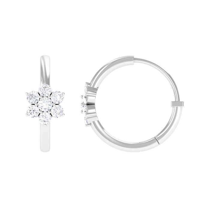 What could be more fascinating than these Diamond Hoop Earrings, having a sweet flower theme? A dream comes true for every enthusiast; these Flower Hoop Earrings will always hold a special place in your heart. With the mix of style and nature inspired design these Huggie Hoop Earrings are an on-trend sparkling piece of jewelry that it would become every women staple Earrings, The Round Diamond in prong Setting, mimicking the shape of a flower on the hoops offers a signature style that would be simple and stylish but yet special for all the occasions. Its minimalist style and trend have a fastening with a classic hinge closure, which is perfect for stacking with earrings to create a curated look. These cute pair of Flower Huggie Earrings enriches your style, while allowing the beauty to take center stage. So, bloom like a flower when you find these Diamond Huggie Earrings, which are also a perfect present for someones birthday.