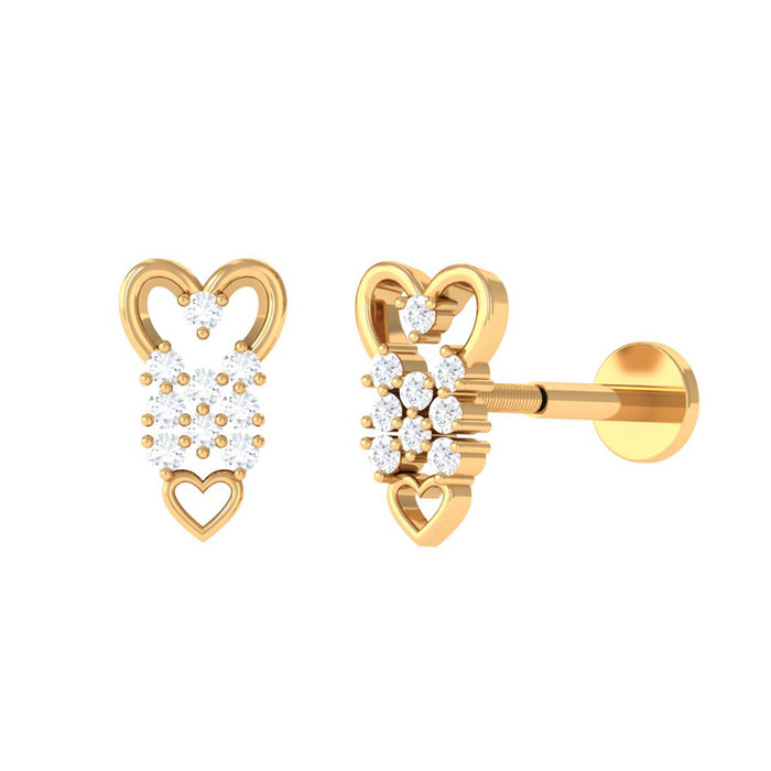 So cute, the Diamond Heart Earring is adorned with a Heart Shape Diamond secured by Prong Setting.Experience comfort at its finest with the simple back style featuring a flat back, ensuring no pokes or jabs, making it perfect for those quick naps or a full night of beauty sleep.Versatile and stylish, this Diamond Earring is designed to complement multiple piercings like Helix, Cartilage, Tragus, Conch, or Upper Lobe Piercing.Created for 24/7 wear, this heart-shaped beauty is your ideal companion for an active lifestyle. Whether you are working out, traveling, or engaged in your daily activities, wear it with confidence and radiate elegance effortlessly.