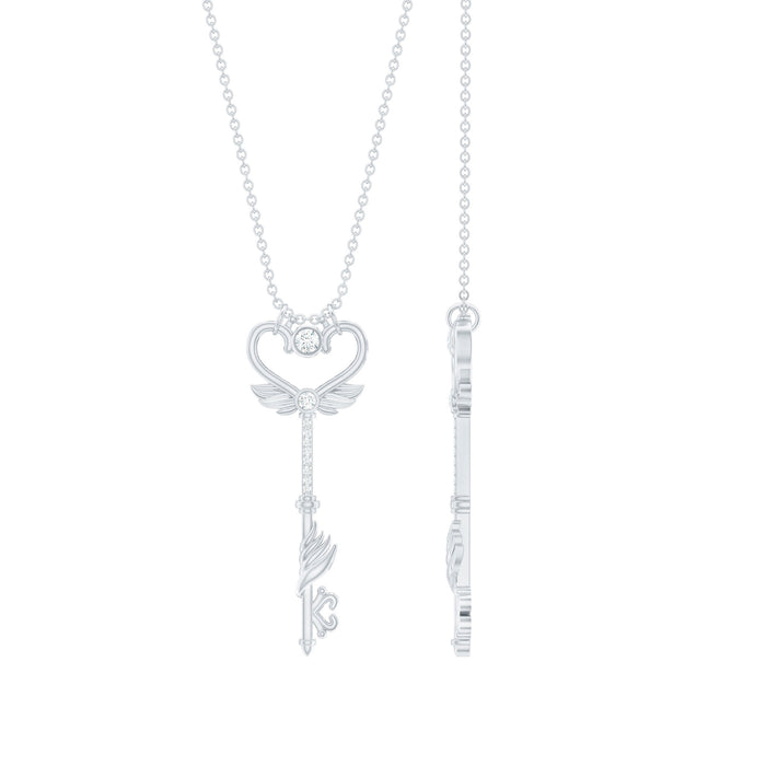 This stunning Diamond Key Necklace beautifully combines sparkle, meaning, and a touch of vintage allure. The Art Deco Pendant resembles a classic key and is embellished with Round Shape Diamond stones that glimmer with every move. This Key Charm Necklace is one of those pieces that feels special as soon as you wear it. The top of the key showcases a Vintage Inspired design featuring Angel Wings detailing, which adds a gentle, elegant flair. This Real Diamond Necklace is both simple and distinctive, making it ideal for enhancing your everyday outfits or for making a subtle impression at special occasions. Crafted with HI-SI Quality Diamond stones, this Key to My Heart Necklace provides the dazzling sparkle of natural gems. Whether you are purchasing it as a gift or treating yourself, this Vintage Key Necklace serves as a lovely reminder of fresh starts and new opportunities. It arrives in a beautiful jewelry box, perfect for gifting or personal enjoyment. Delicate, meaningful, and easy to wear, this Key Pendant is a charming piece of elegance that you will cherish in your collection.