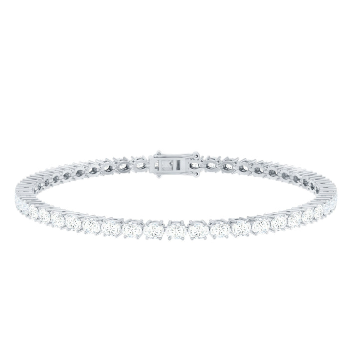 A timeless and elegant Lab Grown Diamond Bracelet harmoniously blends tradition with contemporary grace. Embracing timeless luxury, this Bracelet features Oval Shape Lab Grown Diamond in East West pattern, maximizing its brilliance. Ensuring a perfect touch for adding sophistication and elegance to your ensemble is a cherished piece for your jewelry collection. Radiating timeless charm, this Diamond Tennis Bracelet features a continuous line radiating elegance. Having a stunning design and adding extra sparkle gives dimension to the classic tennis bracelet style. The minimalist and exquisite charm with an understated yet sophisticated look can be layered with multiple bracelet to create a dynamic wrist stack. The EF Color VS Clarity Lab Grown Diamond has a magic wand that earns attention, appreciating understated glamour. Sleek and modern, this Diamond Stackable Bracelet reinvents the timeless appeal of minimalism, providing a seamless line of sparkle.