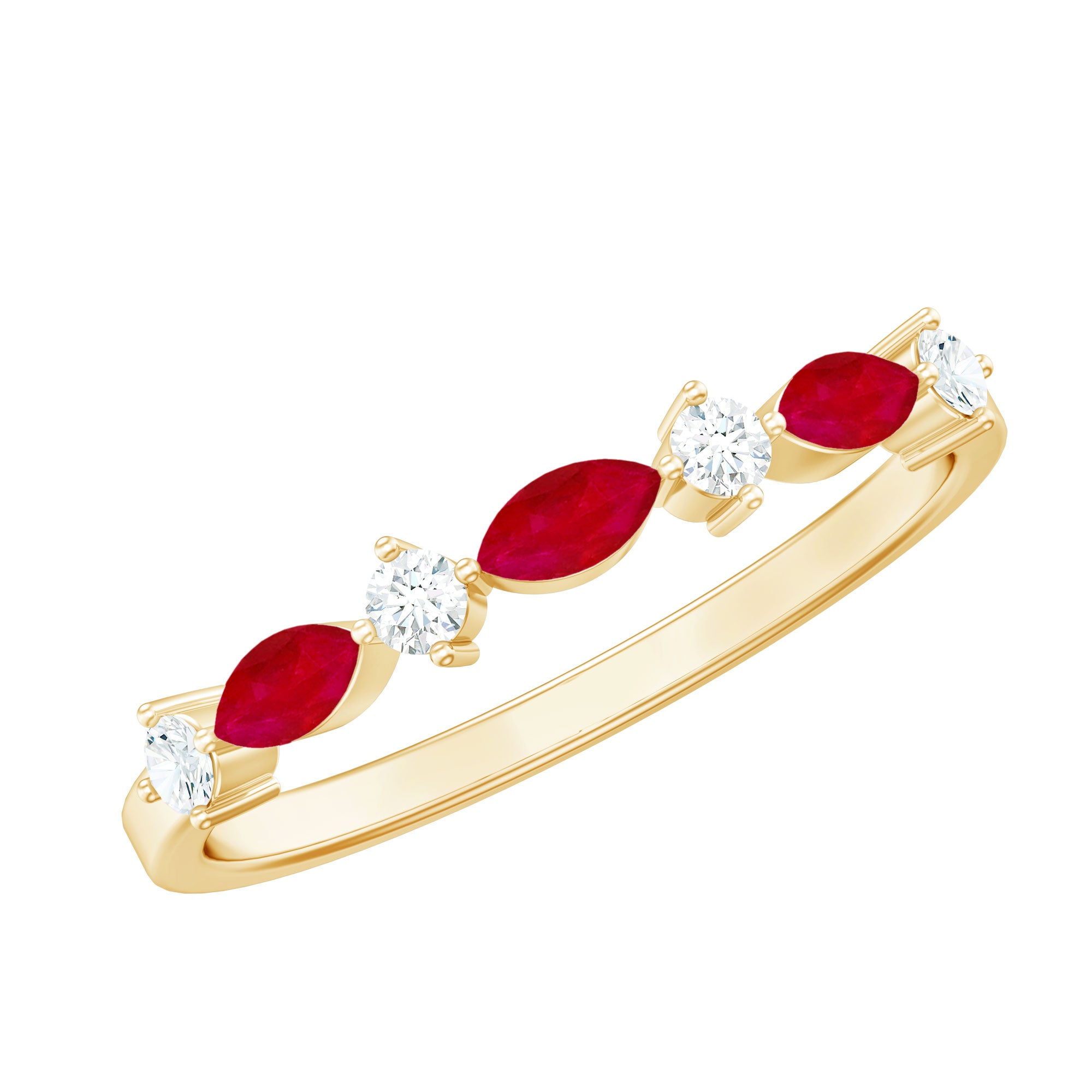 Make your beloved feel extra special with this exquisite Ruby Half Eternity Band. This stunning ring boasts a semi-eternity design with a beautiful arrangement of marquise cut ruby and Round Shape Diamond stones, alternating in a captivating pattern. Its the perfect gift for someone you truly care about and will surely leave a lasting impression.