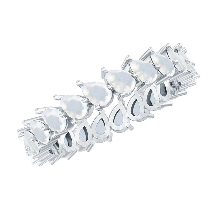 Celebrate her uniqueness and youthful charm with this stunning eternity ring. The Pear cut moonstones are delicately set in a claw setting, exuding simplicity and elegance. Mark her birthday with a special touch by gifting this exquisite June birthstone ring. Its timeless design and enchanting beauty will make her feel truly cherished and loved.