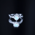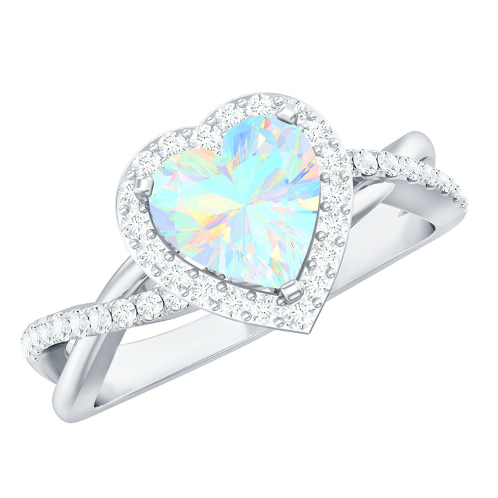 Natural Ethiopian Opal Heart Engagement Ring with Diamond Crossover Shank