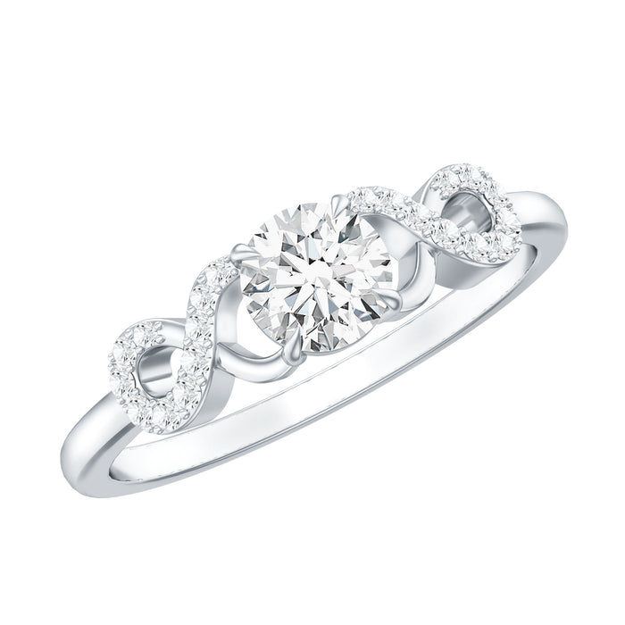 If she fancies everything trendy, you wont come across a better love emblem than our Lab Grown Diamond Promise Ring for her! The Single Stone of 5 MM Round Shape Lab Grown Diamond takes all the center stage here. The Criss Cross Shank lends it a defining designer touch that sets it apart from the rest. Whats more, this Certified Lab Grown Promise Ring is as timeless as your love since it passes all the legitimate quality checks.