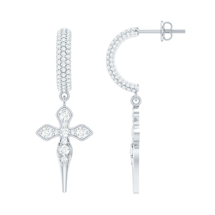 These Vintage Inspired Diamond Cross Earrings are a stunning blend of old world charm and modern craftsmanship. Featuring an elongated cross adorned with dazzling round lab grown diamonds dangling from a gemstone-studded curved bar at the top. Designed with a secure screw back closure, these Minimalist Earrings offer both style and comfort, ensuring a perfect fit for all day. These Diamond Drop Earrings are incredibly versatile and ideal for both casual and formal occasions. You can wear them to church, religious occasions, or weddings as a beautiful expression of faith. For making a statement pair them with a matching necklace and bracelet - also available on our website.