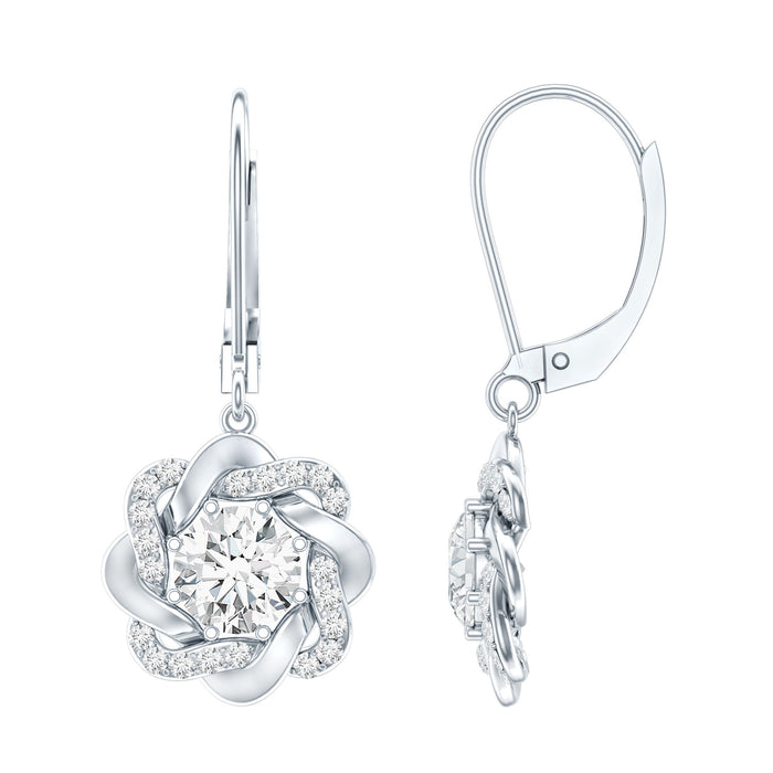 Let your style blossom with these Diamond Drop Earrings, designed to add a touch of natures grace to your jewelry collection. These beauties feature a radiant 6 MM round cut lab grown diamond of EF-VS Quality set in prong setting, surrounded by a floral motif. The intertwined curves of the flower are adorned with smaller diamonds that enhance the overall shimmer. These Flower Dangle Earrings are handcrafted with a secure and comfortable lever back closure, they stay in place allowing you to move with confidence. These Nature Inspired Diamond Earrings are a versatile addition to your jewelry collection, perfect for a wedding, cocktail party, or any grand celebration - wear them and watch every eye in the room turn to you.