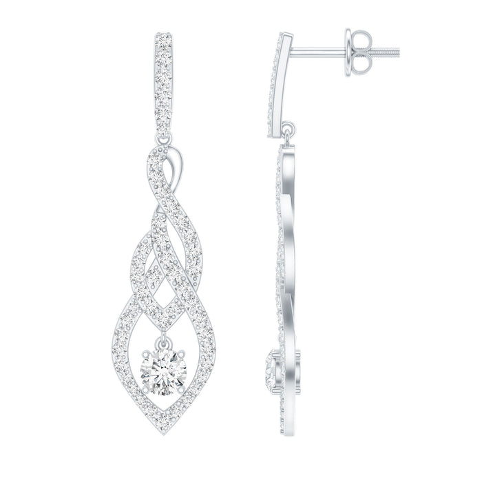 These lab-grown Diamond Earrings are a stunning enhancement to your jewelry collection, featuring exceptional craftsmanship and eco-friendly luxury. The 4 MM round diamond is elegantly set in prong setting, delicately dangling, and highlighted by sparkling small gemstones arranged in a distinctive pattern. With a reliable screw-back closure, these Dangle Earrings embody classic elegance. Ideal for brides, these Diamond Bridal Earrings are a versatile choice for weddings, cocktail parties, or any grand event - wear them and capture everyones attention. Experience ethical luxury with Rosec Jewels, a name that stands for exceptional craftsmanship and innovation.