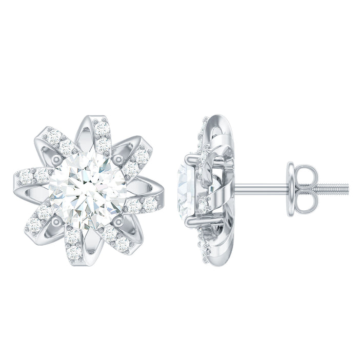 Make the heads turn when you walk with these Floral Stud Earrings featuring a 6 MM Round Shape Diamond (Lab Grown) set in a Prong Setting as a center stone. Embracing the delicate essence of nature, these Flower Earrings feature a Floral Motif accentuated by delicate Ef-Vs quality diamond gemstones. The Screw Back Closure ensures a secure fit, allowing you to adorn yourself with confidence. Perfect as a gift, an anniversary present, a birthday surprise, or even a thoughtful Valentines Day Gift, these Diamond Studs celebrate love and beauty, creating cherished memories for the special women in your life. Meticulously designed by Rosec Jewels, these Lab Grown Diamond Earrings harmonize luxury with exquisite craftsmanship.