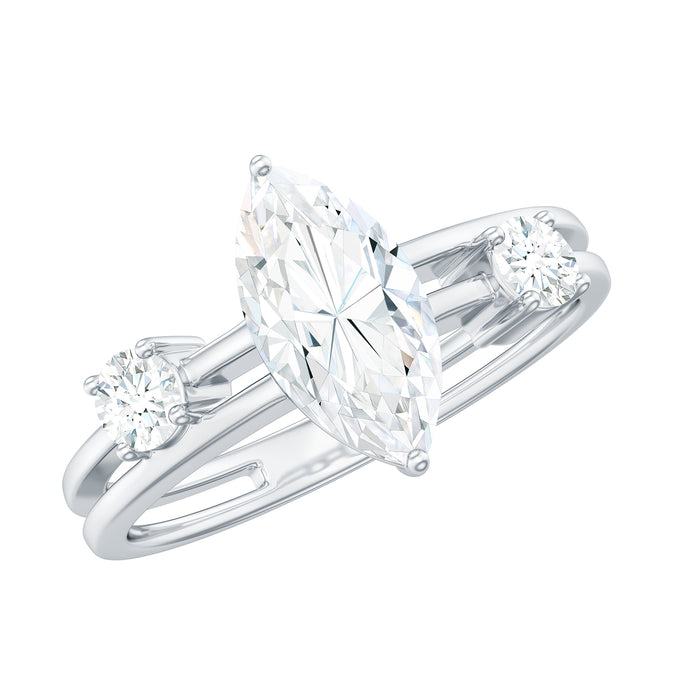 If you are in search of a ring that embodies modernity, significance, and a touch of sparkle, this Lab Grown Diamond Engagement Ring is the perfect choice. At its heart lies a stunning 5X10 MM Marquise Cut Lab Grown Diamond, elegantly set in a Prong Setting that radiates brilliance with its elongated shape. Crafted with EF-VS Quality Lab Grown Diamond stones, this Marquise Engagement Ring offers a clear and captivating sparkle. What truly distinguishes this ring is its Double Band design, embellished with 2 dazzling Round Shape Lab Diamond stones. Together, they present a look that is both unique and timeless, striking a balance between boldness and beauty. This Double Band Engagement Ring is ideal for someone who appreciates a blend of classic and contemporary styles. Available in US sizes 3 to 13, this 1 Carat Lab Grown Diamond Ring is designed for a perfect fit and everyday comfort. Whether you are planning a proposal or gifting it as a cherished present, it arrives in a beautiful jewelry box, ready to create an unforgettable moment. Simple, elegant, and deeply meaningful, this Solitaire Diamond Ring conveys everything you wish to express without the need for many words.
