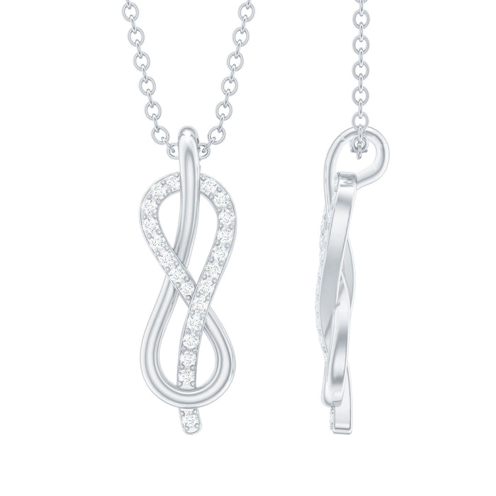 This Moissanite Infinity Pendant is crafted precisely to adorn your neckline. It features round shape of petite moissanite partially embedded in an infinity frame secured with Pave Setting. The pendant dazzles in D-VS1 Quality Moissanite which makes it perfect to complete the overall look. This Moissanite Pendant is handcrafted to adorn your neckline and will be delivered to you in a premium quality jewelry box.