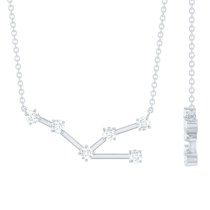 Embrace your zodiac personality with a piece of jewelry that is both meaningful and elegant. The Taurus Zodiac Necklace is designed for women who enjoy personal and stylish accessories, featuring sparkling round cut moissanite stones arranged to form the Taurus constellation. Each stone is carefully set in secure prong setting, connected with sleek metal bars to create a graceful and balanced design that catches the light beautifully. Hanging from a delicate cable chain, this Taurus Necklace is comfortable for daily wear while adding subtle sparkle to any outfit. Its thoughtful design allows it to enhance casual looks or complement dressy attire, making it a versatile addition to any jewelry collection. Symbolizing the traits of Taurus - reliability, patience, and determination, this Constellation Necklace is a meaningful way to express your personality or honor someone special in your life. Perfect for birthdays, zodiac enthusiasts, or anyone who loves celestial-inspired accessories, the Taurus Moissanite Necklace makes a thoughtful and stylish gift.