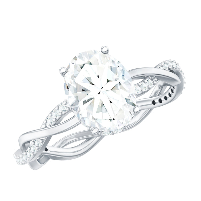 Gracefully presenting a marvelous 7X9 MM Oval Cut Moissanite embedded in the center with Hidden Halo. This Solitaire Engagement Ring features a braided shank where one strand is in plain metal, and the other strand is studded with tiny glimmering moissanite gemstones. The D-VS1 Quality Moissanite featured in the ring will make your lady stun. This Moissanite Oval Engagement Ring is handcrafted for your special day. This Hidden Halo Engagement Ring will be delivered to you in premium packaging which ensures that your emotions attached to this ring are secured. Your purchase will include the certificate of gemstone authentication assuring the quality of gemstone.