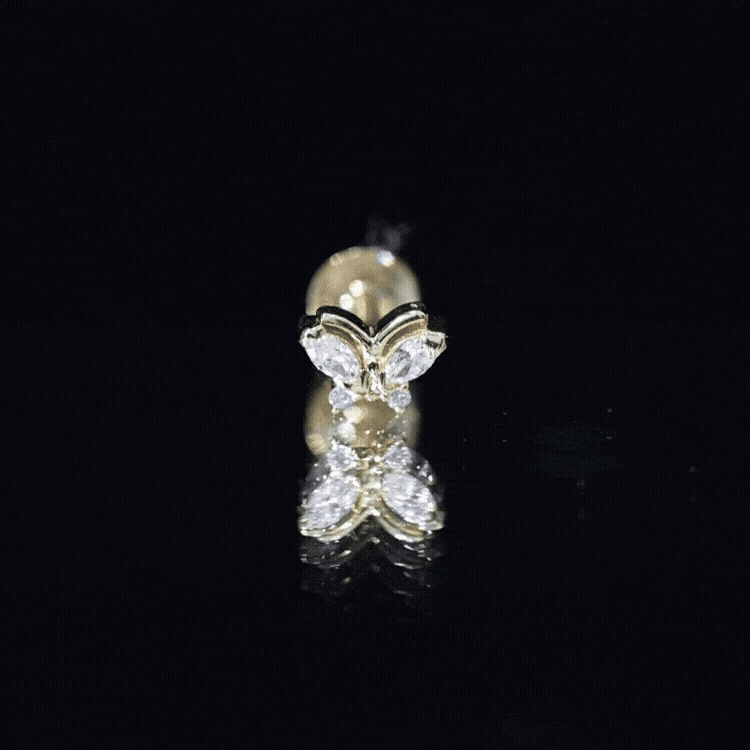 White gold is extra shiny and makes the piercing earring look more elegant and graceful. White gold is best to be paired with diamond accents, it enhances the reflectivity of white diamonds.
