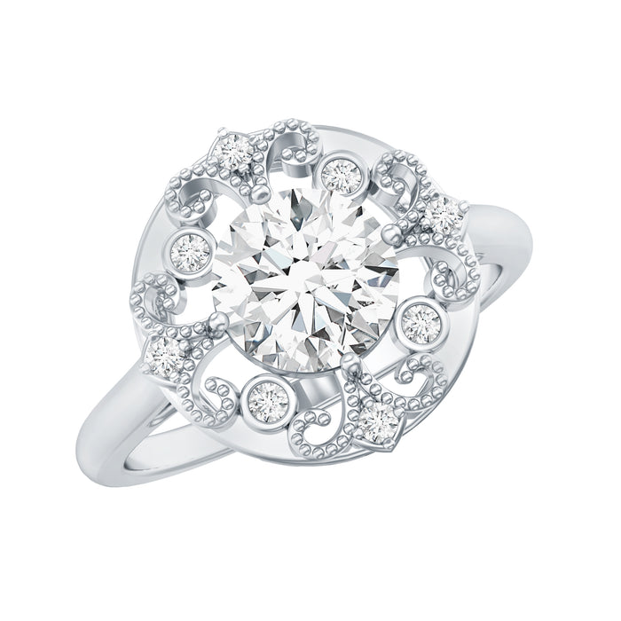 Celebrate your love story with our Vintage Moissanite Engagement Ring that captures the essence of retro beauty and modern brilliance. This breathtaking Round Engagement Ring is a perfect blend of antique charm and contemporary elegance. At its center sparkles a 7 MM round moissanite, held gracefully in prong setting that highlights its exceptional fire and clarity. The vintage-inspired design is elevated with delicate beaded accents and intricately placed smaller moissanites, forming a harmonious Art Deco motif that whispers of romance from another era. Every detail is thoughtfully crafted to evoke a sense of nostalgia, while still appealing to today’s refined tastes. Handcrafted with D-VS1 quality Moissanites, this Antique Engagement Ring is an exquisite choice for those who value both beauty and responsibility. Available in a variety of metal colors and purity options, you can customize this heirloom-worthy piece to suit your personal style. Whether it marks an engagement, anniversary, or simply celebrates a special moment, this Moissanite Art Deco Ring is a symbol of enduring love and timeless elegance. Complete with a certificate of authenticity, it’s a meaningful treasure designed to last a lifetime.